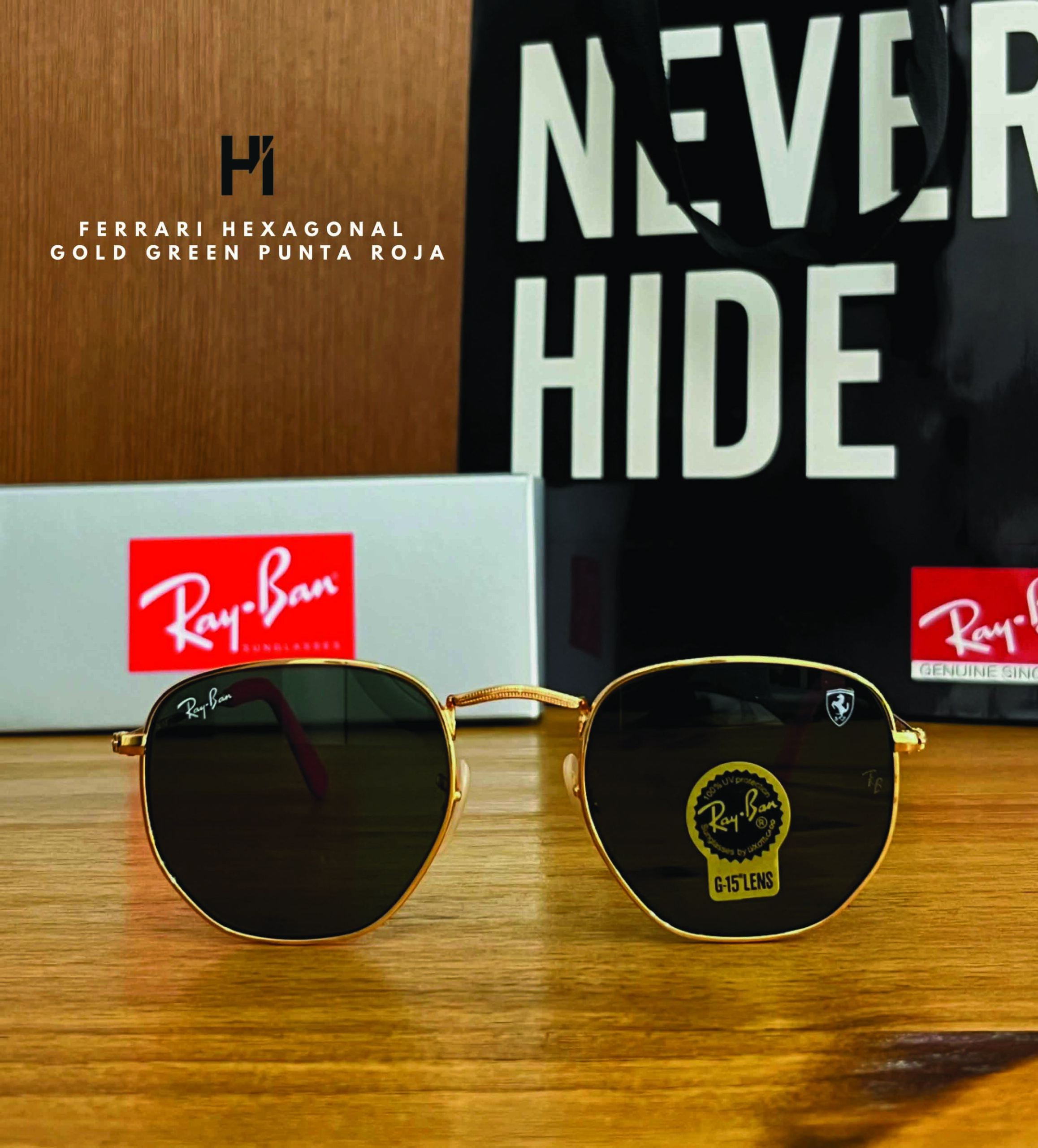 FERRARI HEXAGONAL GOLD GREEN PUNTA ROJA